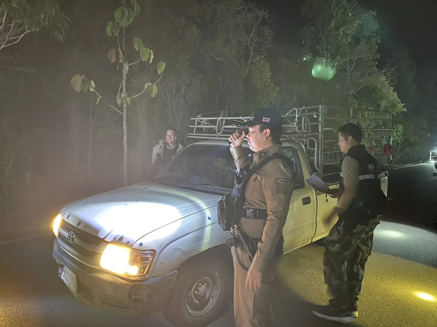 พ.ต.อ.พรหมมินทร์ อินทนันท์ ผกก.สภ.อมก๋อย ,พ.ต.ท.ศักดา โชติพัฒนโภคิน รองผกก.ป.สภ.อมก๋อย ควบคุมการปฎิบัติโดย พ.ต.ต.สุพจน์ ใจยา สวป.สภ.อมก๋อย มอบหมายให้ ร.ต.ท.เกษม หวลสัตวย์ รอง สว.(สส.)ฯ ปฏิบัติหน้าที่ ร้อยเวร 20 พร้อมด้วย สายตรวจ 201 ตั้งจุดตรวจหรือจุดสกัดในการสนธิกำลังร่วมเจ้าหน้าที่ป่าไม้,ฝ่ายปกครอง,ผู้ใหญ่บ้าน,ชรบ. เพื่อตรวจสอบการลักลอบกระทำผิดกฎหมายว่าด้วยการป่าไม้ในพื้นที่ป่าสงวนแห่งชาติ และป่าอนุรักษ์ตามกฎหมาย ณ หน่วยพิทักษ์ป่าปางตึง ต.ยางเปียง อ.อมก๋อย จว.เชียงใหม่