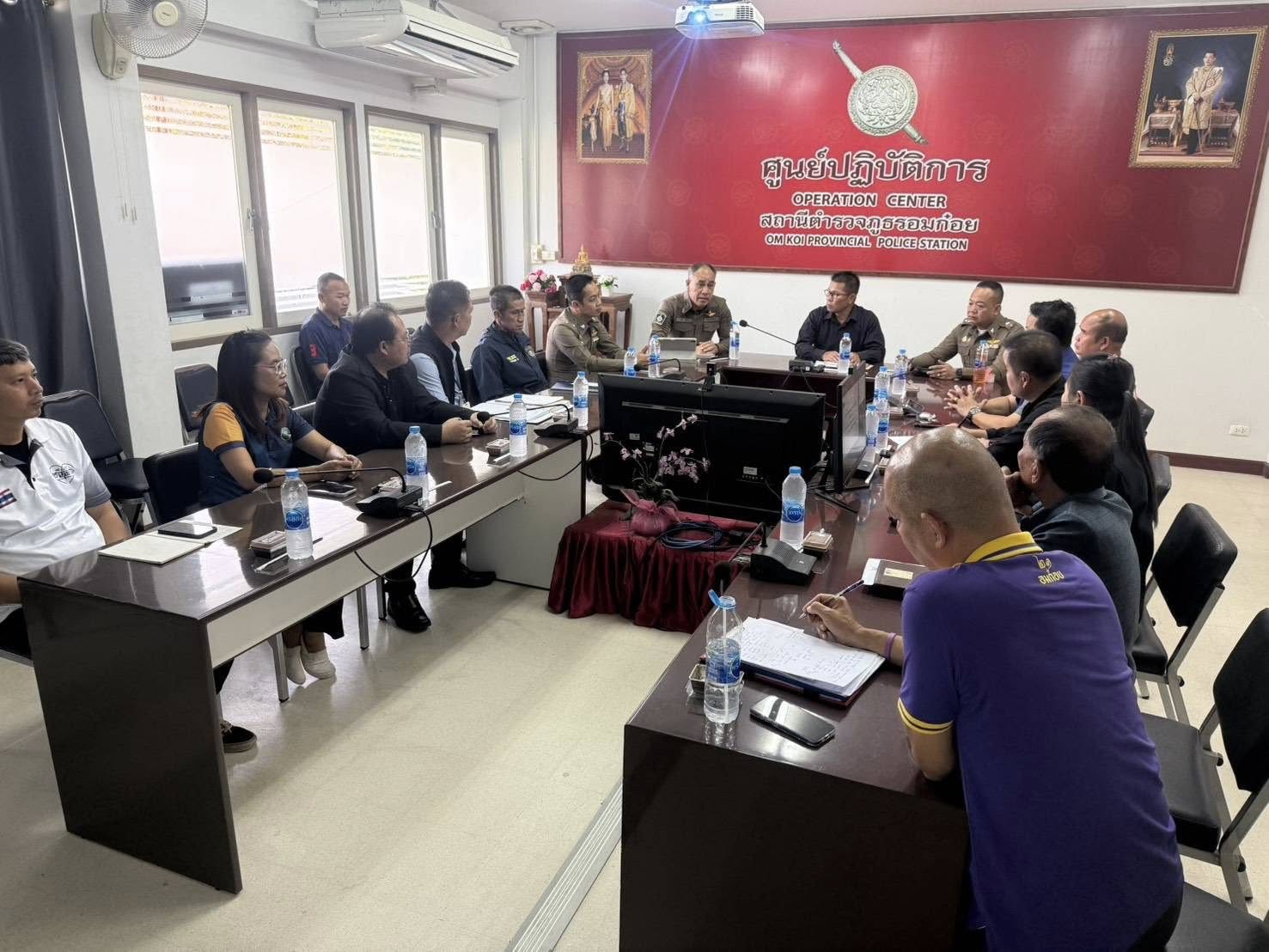 พ.ต.อ.ธานี มยุรา ผกก.สภ.อมก๋อยฯ, พ.ต.ท.เกียรติศักดิ์ อุ่นเมืองอินทร์ รอง ผกก.ป.ฯ ,พ.ต.ท.ยรรยง ใคร้ยง รอง ผกก.สส.ฯ ,พ.ต.ต.ชาตรี ศรีคำจักร์ สวป.ฯ ,พ.ต.ต.นเรศ ติคำ สว.สส.ฯ พร้อมทั้งคณะกรรมการตรวจสอบและติดตามการบริหารงานตำรวจ สภ.อมก๋อยฯ (กต.ตร.สภ.อมก๋อยฯ) ร่วมกันจัดการประชุมฯ ครั้งที่ 2 ประจำปีงบประมาณ 2569 เพื่อติดตามผลการปฏิบัติงานในห้วงไตรมาส 1-2 พร้อมทั้งรับฟังข้อคิดเห็นและข้อเสนอแนะจากคณะฯ เพื่อร่วมกันแก้ไขปัญหาให้แก่ประชาชนในเขตพื้นที่รับผิดชอบ ณ ห้องประชุม ศปก.สภ.อมก๋อย จว.เชียงใหม่