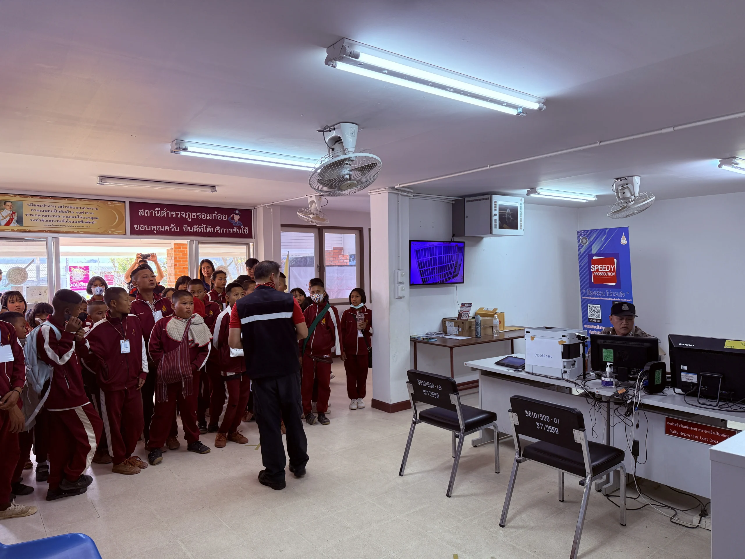เป็นวิทยกรแนะนำสถานที่ ให้ความรู้ในการมาใช้บริการ มีขั้นตอนอย่างไร เอกสารที่ต้องใช้ในการมาใช้บริการมีอะไรบ้าง และพาเยี่ยมชมบริเวณต่างๆ ของ สภ.อมก๋อย ในการทัศนศึกษาของนักเรียนโรงเรียนบ้านนาไคร้ ชั้นประถมศึกษาปีที่ 3-6 จำนวน 50คน