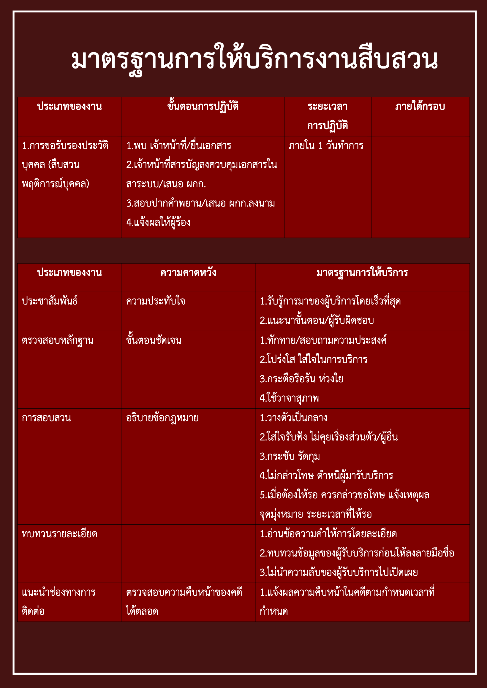 คู่มือการให้บริการประชาชน งานสืบสวน