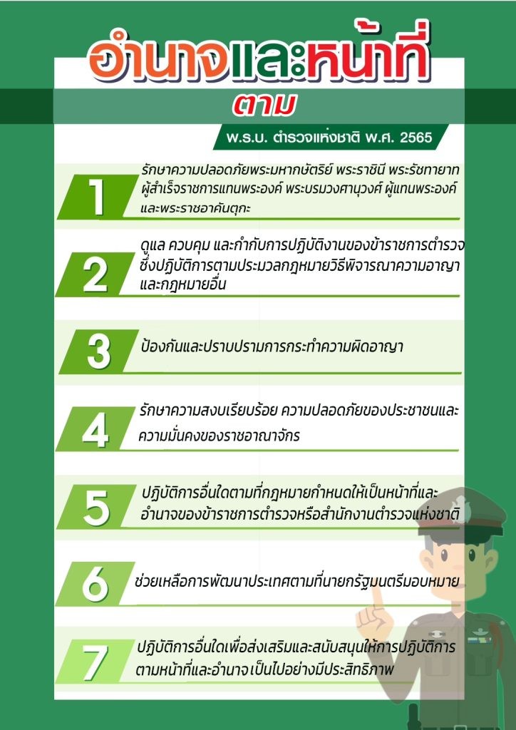 ตลอดจนปฏิบัติงานในด้านการสืบสวน อาชญากรรม การกระทําความผิดตามพระราชบัญญัติที่มีโทษทางอาญาทุกฉบับ